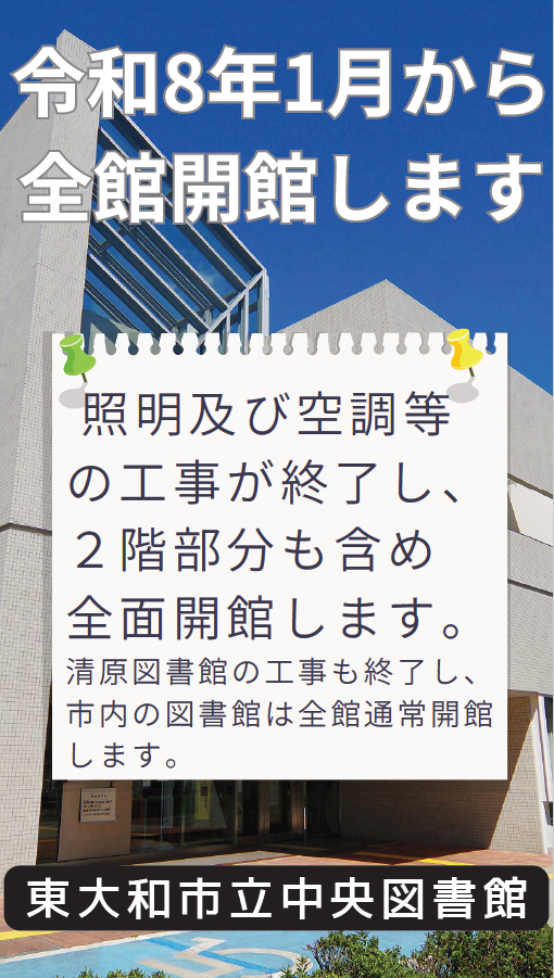 再開日:中央図書館2階 令和8年1月5日(月)