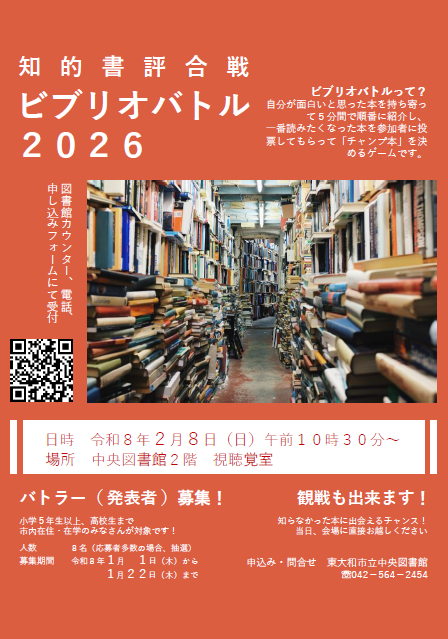 知的書評合戦「ビブリオバトル」の発表者の募集(中央)